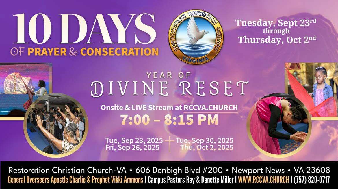 Native of Round Oak, Georgia, Apostle Charlie Ammons currently serves as the Founder and General Overseer of Restoration Christian Church (RCC) and Restoration Covenant Alliance International (RCAI) in Newport News, Virginia. As a man of God who operates in authority and submits to authority, Apostle Charlie understands rank, rule and order in the Kingdom of God. He is anointed with an Apostolic Mantle and takes joy in releasing the spirit of Servant-Leadership to the Body of Christ.